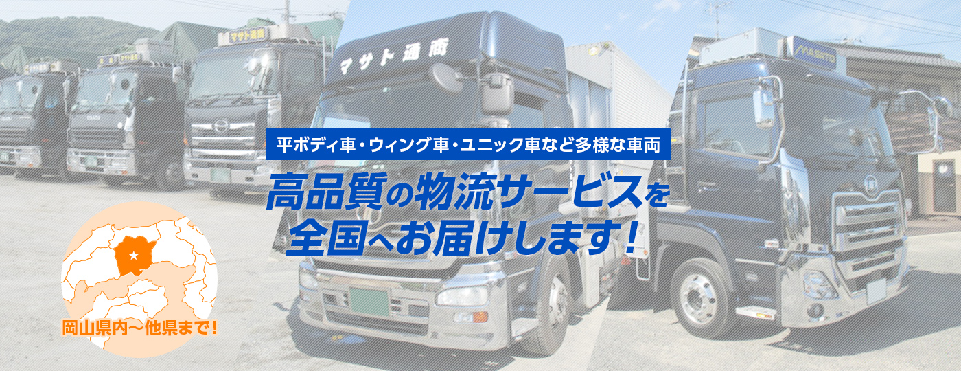 マサト通商は、鉄骨や機械など様々な製品を岡山県内はもちろん、南は九州から北は北海道まで輸送!